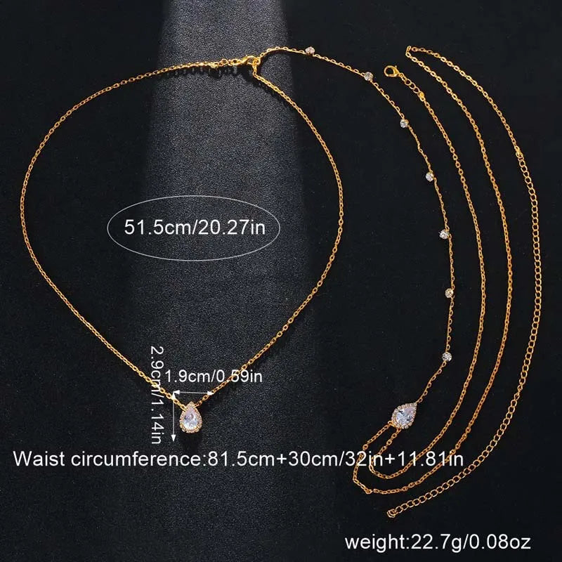 Our Elegant Zircon Water Drop Back Necklace is not just an accessory, it's a statement piece that elevates any outfit. Whether you are dressing for a wedding, a formal event, or a night out, this necklace provides the perfect finishing touch. The geometric design and sparkling zircon crystals catch the light beautifully, ensuring all eyes are on you. Crafted from high-quality zinc alloy, it guarantees durability without compromising on style. Available in classic gold and silver tones, it's adaptable for women of all tastes. Let your personality shine with this unique blend of elegance and trend.