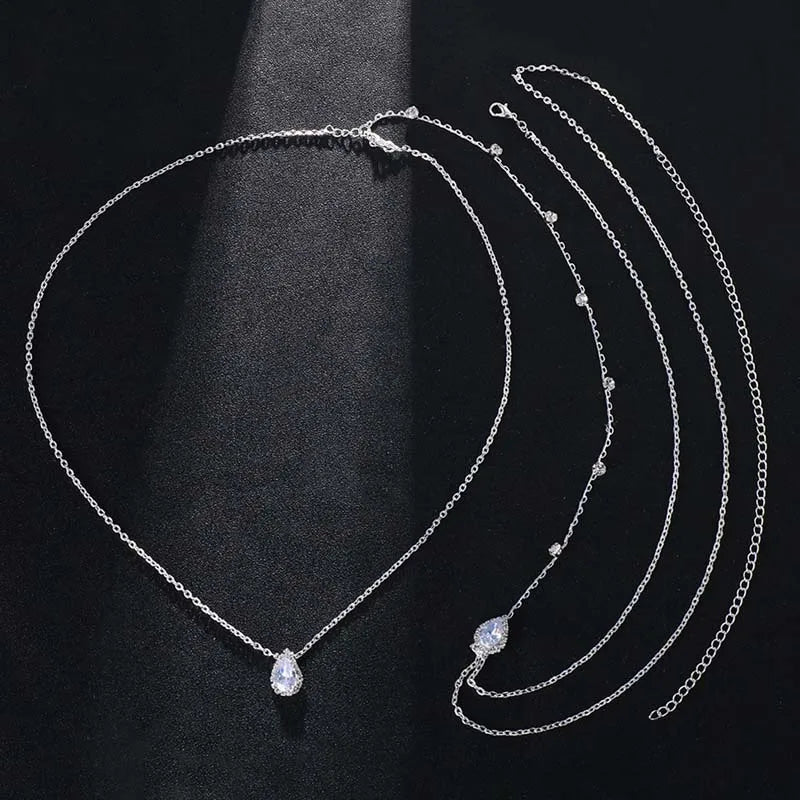 Elegant Zircon Water Drop Back Necklace for Women